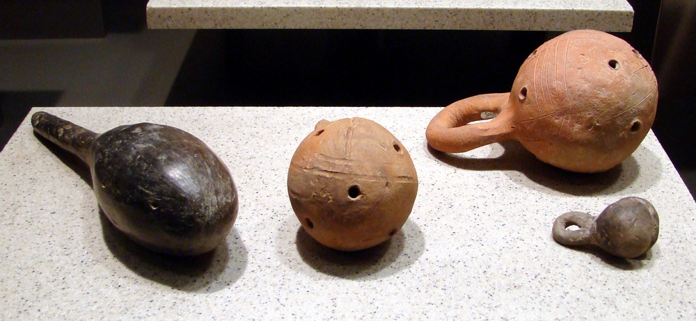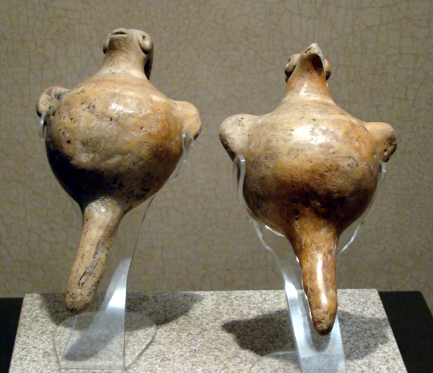 Named after a community toward the southern end of Guanajuato State, Chupícuaro was an important culture region during the Late Formative Period (400 BC – 150 AD) in Central Mexico. While it was unusual during its time because of how little influence it received from their Olmec contemporaries, they did share culture elements with the rest of Mesoamerica, most prominently their polished ceramic traditions. Their high-quality ceramics included many musical instruments such as the trio of flutes and bird-shaped maracas presented here.