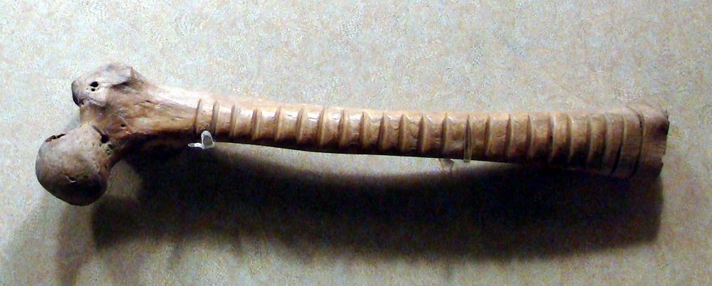 Rasps were also common instruments, and bone was the foremost material for their crafting. The musician would rub a wooden or bone staff against the deep grooves cut against the bone's shaft. The rasp at left still has its socket, which helps identify it as coming from an animal's tibia or thigh bone. The rasp on the right is unique in Mesoamerica because it is the only ancient artifact known to be made from a whale bone, in this case a rib! It has four sets of grooves along its inner arc, perhaps to allow up to four musicians to play on it at once!