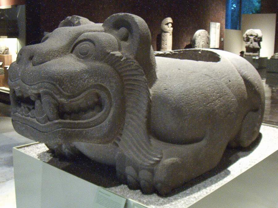 The Olmecs and Maya early stressed the jaguar as a lord of the night, the prowler and the guardian. The Aztecs built upon this idea when they assembled the Jaguar Warriors. The eagle was the greatest predator of the day. The jaguar was that of the night. This piece is a logical counterpart to the Mexica Aztecs' Eagle Bowl.