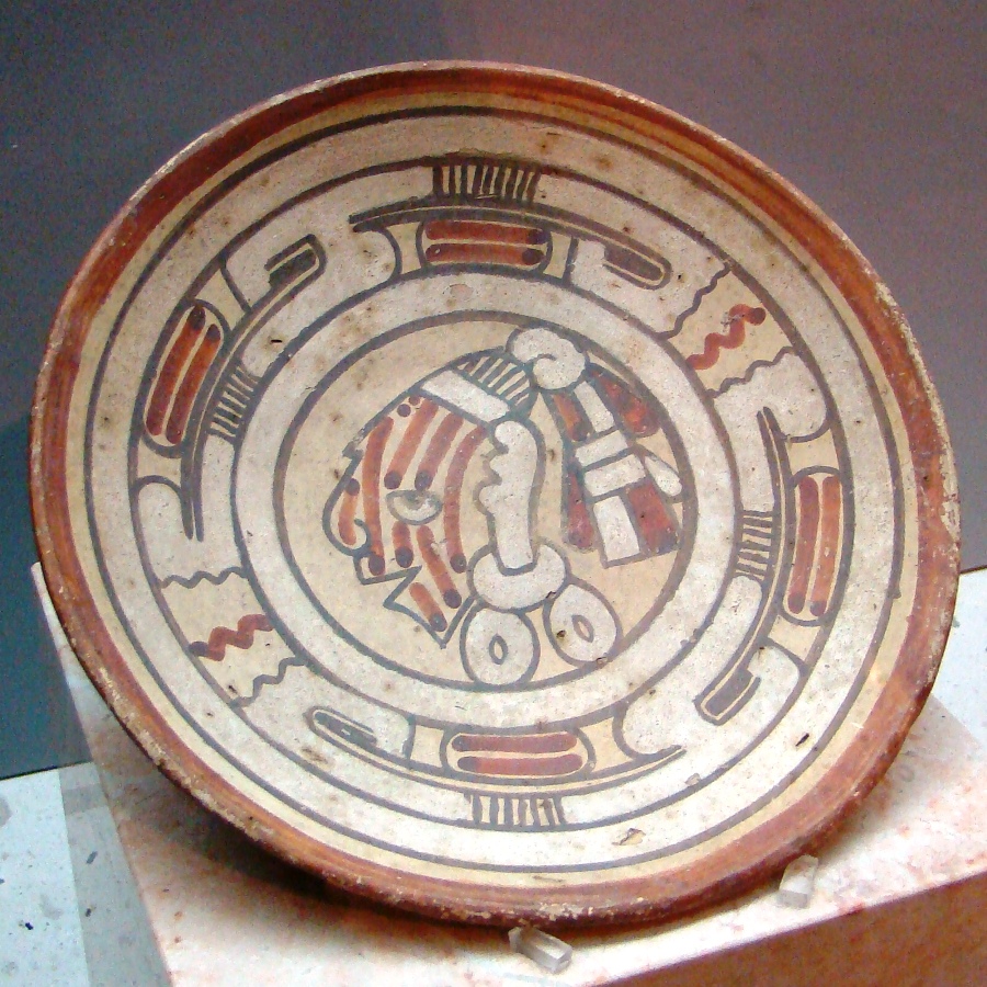 As seen with the bands running down this profile of the god, red was one of the most important colors for Xipeh Toteuc. Indeed, in Aztec theology he was one of the four aspects of the supreme god Tezcatlipoca, namely the red aspect of the west. Thus another name for Xipeh was Tlahtlauhtezcatl, the 'Red Mirror,' a reference to copper.